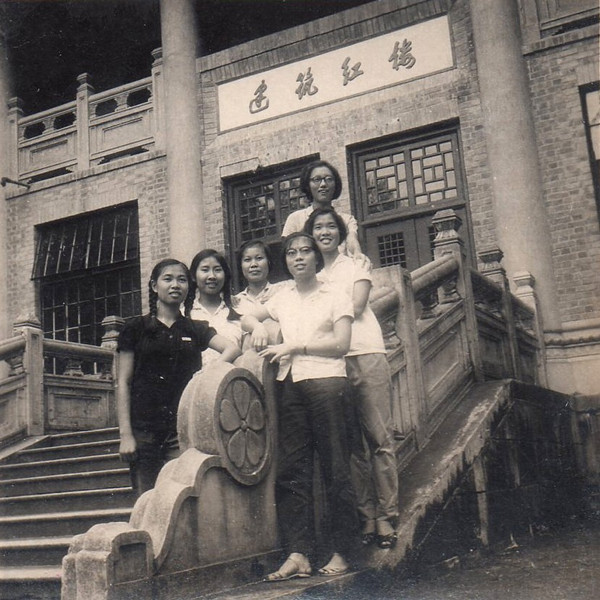 1965年徐月清(楼梯扶手外侧后立者)与同级女生在华工建筑红楼前合影