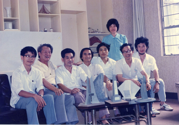 1986年5月徐月清校友(后排站立者)到设计院商讨纪念碑的设计工作