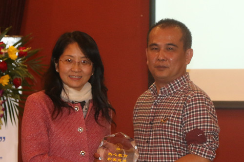 陈艳秘书长向林明松校友颁发捐赠纪念水晶