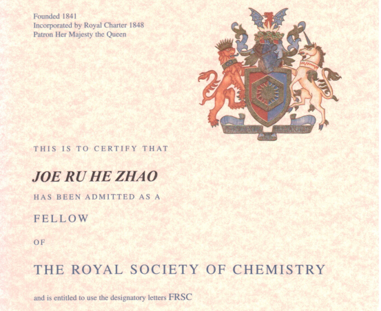 喜讯!赵汝和校友当选英国皇家化学学会院士