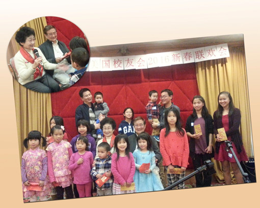 活动现场,美食飘香,欢声笑语不断。在每年春节聚会的经典节目——发红包环节,老教授陈统坚、邓凤鸣夫妇以爷爷奶奶的身份慈祥地端坐着,一群可爱的校友子(孙)女围绕着他们,在一声声纯真甜美的“爷爷奶奶新年好”的拜年声中,他们把填满长辈祝福的红包,送到小朋友可爱的小手上,此情此景,俨然就是一个和睦温馨的大家庭。