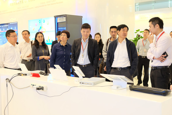 邓飚校友陪同彭新一常务副校长一行参观华为公司展厅与智慧教室,介绍了华为公司的科技研发及成果,重点展示其在教育行业的主要产品和解决方案。彭新一认真观看聆听,并与随行的信息化团队探讨相关技术在高校中的研究与应用。随后双方就智慧校园展开座谈交流。