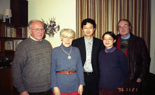 1996年11月,在法国凡尔赛,殷晓俊与方苏雅协会成员合影。左一是方素雅的侄子皮埃尔赛都,时年72岁