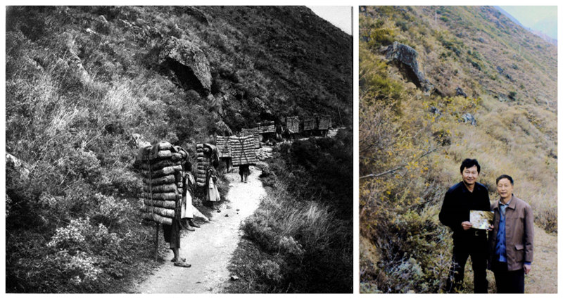 1903年,方苏雅在泸定茶马古道上拍摄的背茶人照片;百年后,殷晓俊海底捞针找到同一个位置,他豁然开朗,原来方苏雅的拍摄带有军事侦察目的。