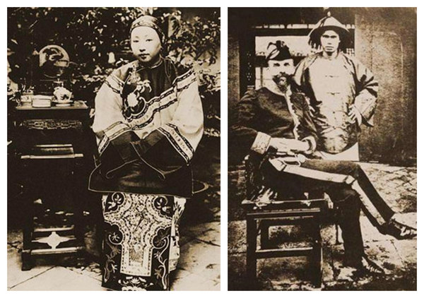 左图:1900年,镇守景东府的田将军的夫人。右图:1900年,方苏雅与其卫兵在昆明法国领事府。