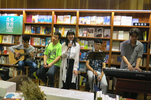 活动当晚,乐队主唱彭清蓉以一首《Fly me to the moon》温情开场,优美的曲调加上她特别的唱腔,瞬间打动了众人的内心,现场听众无不驻足屏息,生怕瞬息间错过任何的精彩。接下来,乐队更是带来《找自己》、《外面的世界》、《You are beautiful》以及《Danger in loving you》等动人曲目。《流川枫与苍井空》、《莉莉安》、《Hotel California》、《Someone like you》等歌曲的精彩演绎,乐队用歌声讲述着鲜活的故事和深刻的情感领悟。简单的吉他弹奏搭配着圆鼓和电子琴,让歌声如潺潺流水更加动人,轻易地抓住了观众的耳朵。