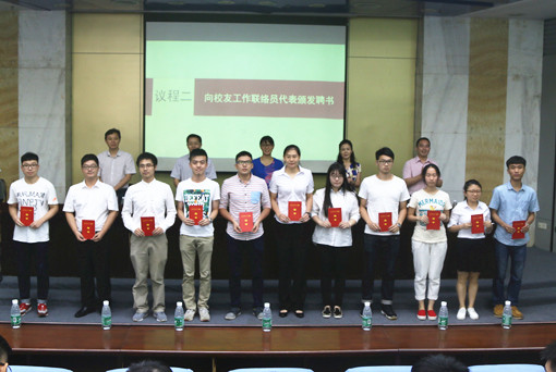 在一阵阵热烈的掌声中,2016届毕业生校友工作联络员代表从嘉宾手中接过聘书,接过这份荣誉和使命。随后,2016届毕业生方学兴代表全体联络员发言,他表示,2016届联络员将尽职尽责,加强和母校的联系,为母校的发展作出积极的贡献。