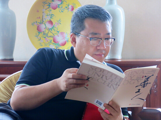 谢向东校友翻阅《华工人》