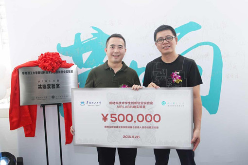 2016年9月26日,由我校校友捐赠的华南理工大学材料科学与工程学院新材料学生创新创业实践基地——Airlab共响实验室正式启用,并开始为期三天的开放日活动。