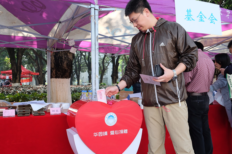 除了重逢相聚、再叙往事的欣喜和感动,校友们还带来了对母校的回报与感激。“微捐赠”华工纪念品爱心义卖、“微有爱”学生志愿服务爱心众筹活动现场全天气氛热烈。印有华工标记的公仔、书签以及校徽等物品,承载着校友们的回忆,进行爱心义卖;学生志愿者们精心准备的现场手工制作、无偿按摩等特色活动,为校友们带来欢乐。两个爱心活动累计接受捐赠上万元,善款将分别纳入“华工校友励学金”和“华园情爱心基金”,帮助家庭贫困的师弟师妹们更好地完成学业,以及让身患重大疾病学子重拾信心。