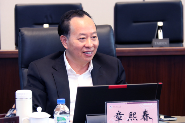 章熙春感谢各位专家与会指导,并介绍了学校近年来在学科建设、科学研究、人才培养、服务社会等方面取得的办学成果,以及部省市校四方共建广州国际校区以来形成的“一校三区”高水平办学的重要布局。