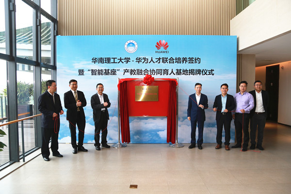 微雨众卉新,一雷惊蛰始。新的一年,华南理工大学与华为技术有限公司的合作再添新内容。3月5日上午,校企双方在华南理工大学签署了人才联合培养协议,并为“智能基座”产教融合协同育人基地揭牌。高松校长,华为松山湖研究所所长张来发,华为网络产品与解决方案人力资源总裁王义翔出席活动。