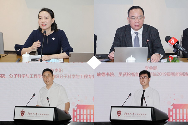 随后,峻德书院、吴贤铭智能工程学院2019级本科生李金鹏与学生家长彭贵阳作为在读学生和家长代表,分享了切身感受。他们表示,在这里有国际化师资力量、有先进教学科研设施,学习和生活幸福感满满,成长收获颇丰,也欢迎新一代华工人加入这个有爱的大家庭。