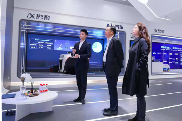 李正一行参观了科大讯飞人工智能展示厅,了解科大讯飞的核心技术优势及产业发展情况。该公司坚持核心源头技术创新和产业化落地,致力于让机器“能听会说,能理解会思考”,经过22年发展,在语音及语言、自然语言理解、机器学习推理等技术领域保持国际领先,两次获得“国家科技进步奖”,入选首批国家新一代人工智能开放创新平台,承建我国首个认知智能国家重点实验室,已成为全球人工智能领域的标杆性企业。