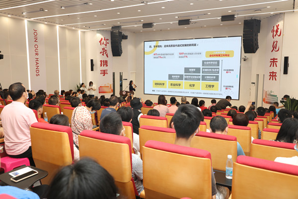 “少年青衫薄,鲜衣怒马疾。但为国所需,不畏路难行。” 宣讲会上,陶韶菁用一首原创的《致青春》致敬青年,为高三学子送上鼓励。她以“大学≠大·学”“未来意识是什么”“何为青春”设问,以华南理工大学办学实践作答,详细介绍了学校始终家国情深,始终与国家发展同向同行、同频共振的百年办学历史,植入学校血脉深处的创新基因,以及面向未来的办学理念和思路。