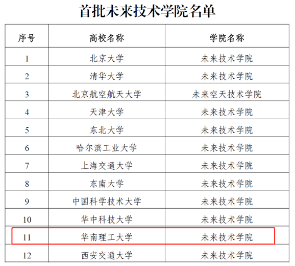 5月20日,教育部发文公布首批未来技术学院名单,华南理工大学未来技术学院成功入选教育部首批未来技术学院。
