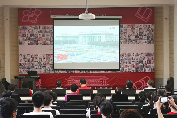 华南理工大学组织师生在校内多处集中收看了直播盛况,聆听习近平总书记的重要讲话,共同庆祝党的百年华诞,共同回首党的百年光辉奋斗历程。
