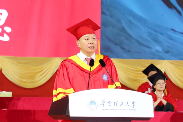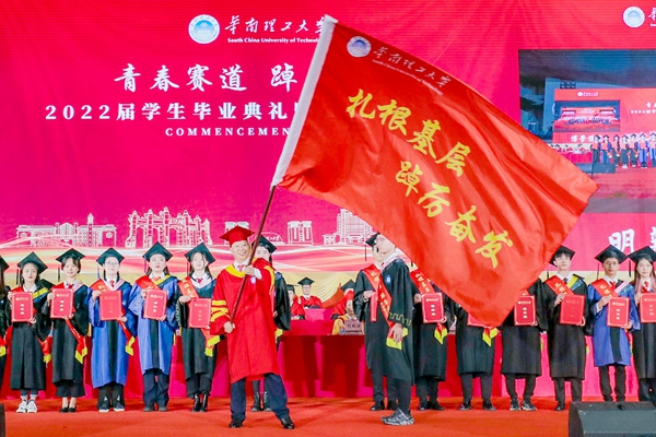 在人生新的起点,将面对什么样的际遇和机缘,将如何在自己所处的时代条件下谋划人生、创造历史?对此,章熙春指出,百年未有之大变局下,民族复兴的进程不可逆转,大国崛起的步伐不可阻挡,第二个百年目标将在同学们手中变为美好现实;时代呼唤英雄,时势造就英雄,2022届毕业生中必将英雄辈出。今天母校既要祝福大家毕业快乐,更期待各位争做英雄、成就英雄。一是坚守初心,成为顶天立地的“家国英雄”。希望同学们始终高扬理想信念旗帜,向下扎根、向上生长,以“沾泥土”“带露珠”“冒热气”的实际行动践行初心使命,把对祖国血浓于水、与人民同呼吸共命运的情感贯穿学业全过程、融汇在事业发展的毕生追求之中!二是执着奋斗,成为建功立业的“行业英雄”。希望同学们秉持华南理工大学精神,向敢创新、会创造、能创业的校友们学习,在党、政、军、民、学等各个群体中勇毅前行、引领示范,在工、农、商、学、兵等各个领域中开拓创新、久久为功,在青春的赛道上奋力奔跑。三是保持热爱,成为有情有趣的“生活英雄”。希望同学们心怀热爱感恩乐观,保持向上向善向美,细心呵护亲情、友情和爱情,用心感受灯火可亲、家人闲坐、三餐四季的温暖有趣,风雨无阻创造美好生活。“无论是家国英雄、行业英雄还是生活英雄,你们都不是‘孤勇者’,因为你们的后面是休戚与共的母校,是同气连枝的57万学长!”