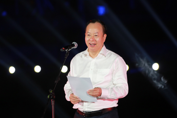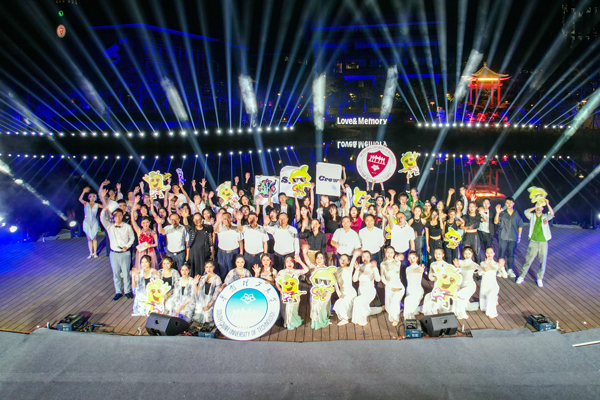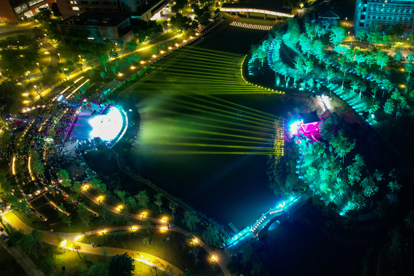 随后,章熙春和音乐会吉祥物“柠檬仔”一起点亮沿岸所有灯光,拉开了音乐会的序幕。