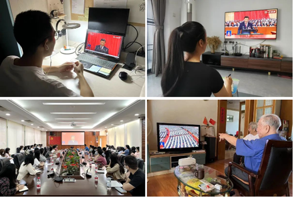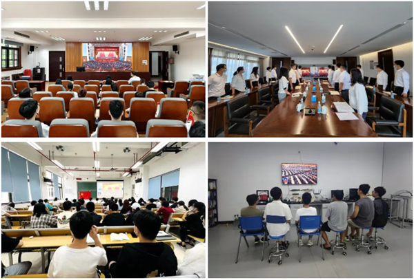 华南理工大学积极部署,线上线下结合学、领导干部带头学、不同群体专场学、院系师生全面学,通过在五山校区、大学城校区、广州国际校区设领导干部、学生代表、师生党员发展对象等9个专场、168个会场集中观看,以及通过网络、电视、广播自学等方式,组织3万余名师生收听收看了大会开幕会。