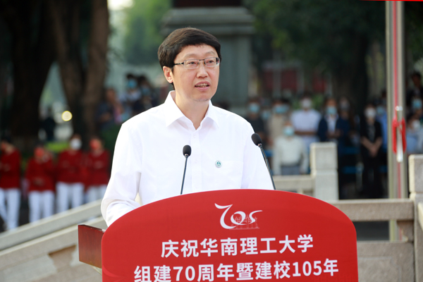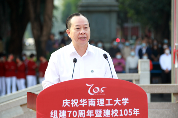 张立群回顾了学校发展历史,他指出,一代又一代华工人披荆斩棘、砥砺奋进,为服务国家重大战略和区域经济社会发展作出了突出贡献。面向新的征程,华南理工大学将深入贯彻落实党的二十大精神,全面贯彻党的教育方针,落实立德树人根本任务,践行为党育人、为国育才的初心使命,传承红色基因,赓续百年文脉,将学校百年办学历程的宝贵经验在实干兴邦的实践和创新中不断丰富发展,奋发作为,追求卓越,勇当粤港澳大湾区高等教育发展的排头兵!