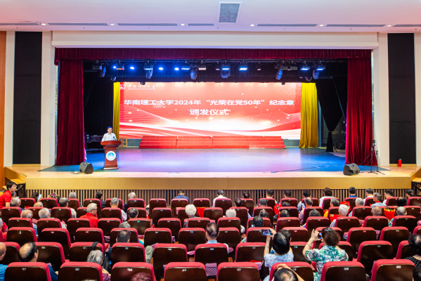 6月25日,华南理工大学举办2024年“光荣在党50年”纪念章颁发仪式暨“七一”慰问音乐会,学校党委副书记麦均洪、副校长徐向民、老领导吕廷秀出席活动,“光荣在党50年”纪念章获得者代表、离退休教工党员代表以及五山校区各学院2024年新入党的学生党员等500余人参加活动。