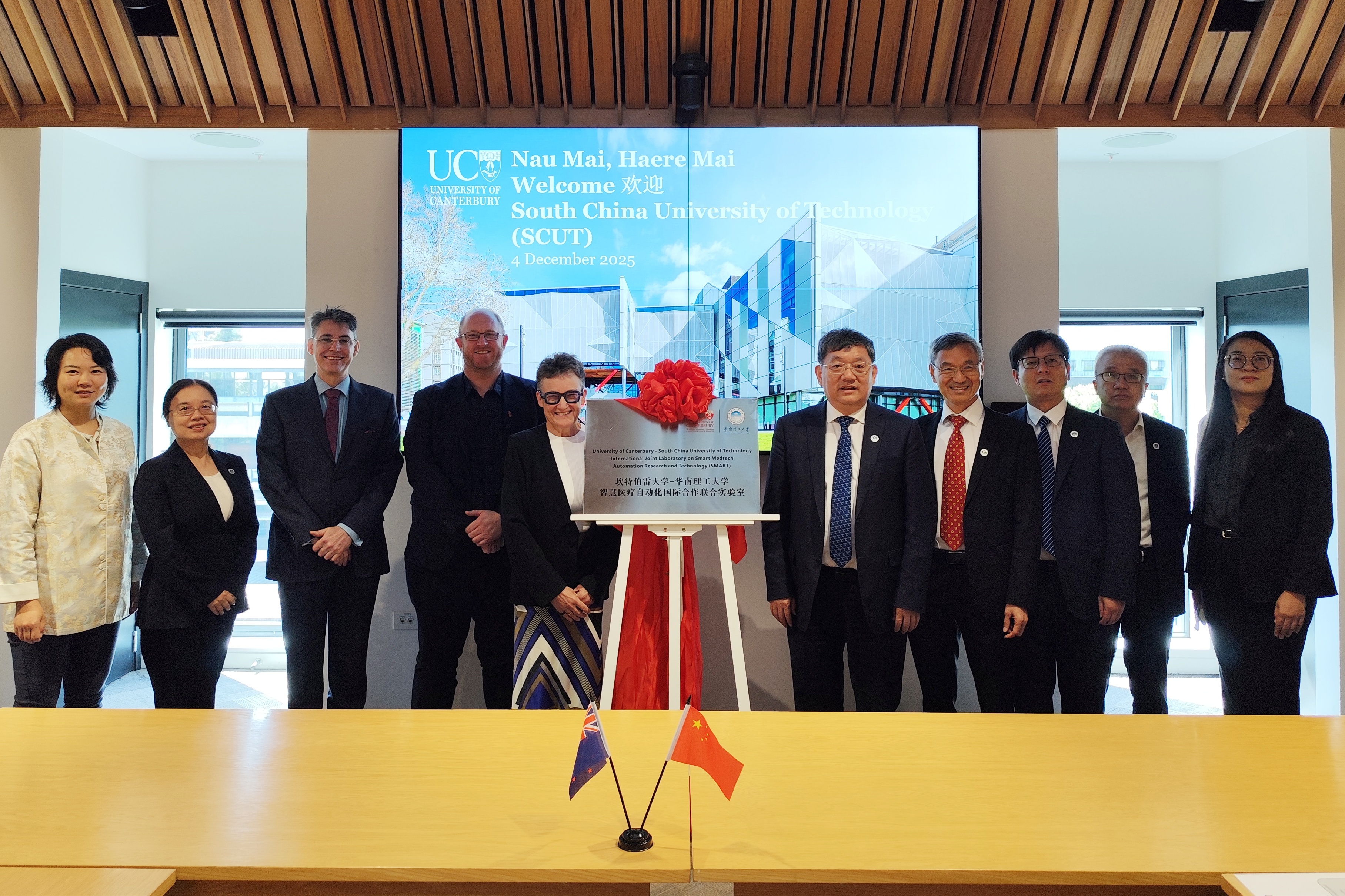 在坎特伯雷大学,唐洪武与该校常务副校长Lucy Johnston共同为“坎大-华工智慧医疗国际联合实验室”揭牌,标志着两校合作进一步深化。双方在推进联合实验室及离岸中心的实体化运营、启动博士生联培项目、构建智慧医疗研发联盟、加强学生双向流动和管理人员交流等方面均达成共识,未来将积极拓展两校全方位、多维度合作,打造战略性全面合作伙伴关系。