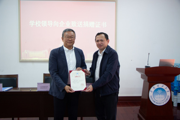 与会嘉宾共同为获奖学生颁发证书。获奖学生代表骆宁在发言中分享了自身在专业学习、科研实践及学生工作中的成长经历,表达了对学校培养和企业资助的感激之情。他表示,将以此为新的起点,继续脚踏实地、追求卓越,在未来以实际行动回馈社会、回馈母校。